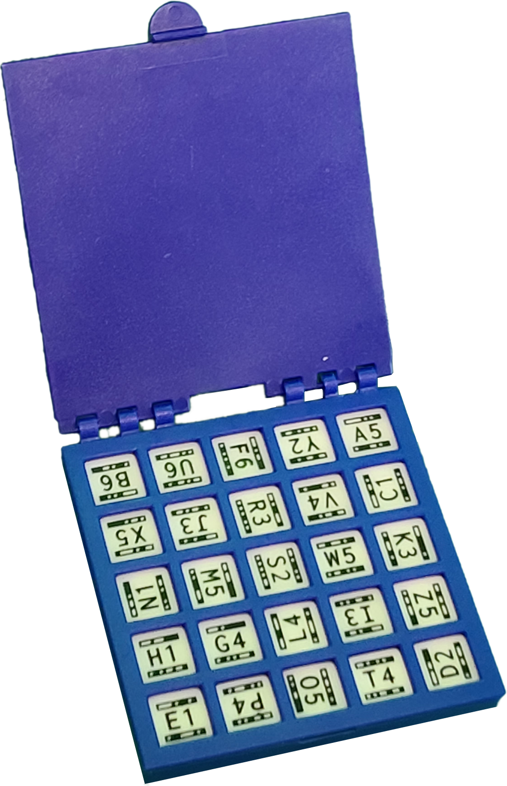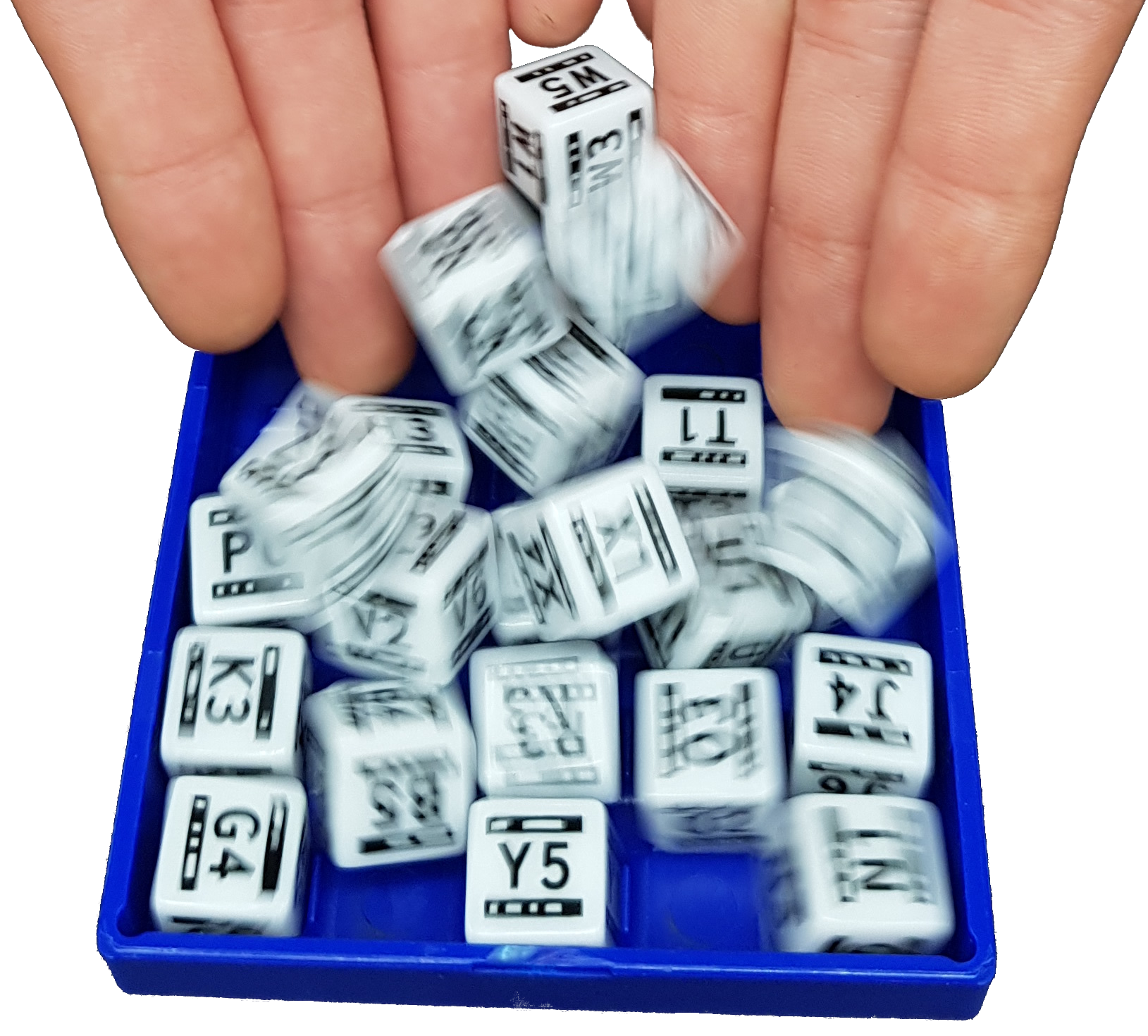 Each line contains a redundant encoding of the letter and digit on the face of the die.